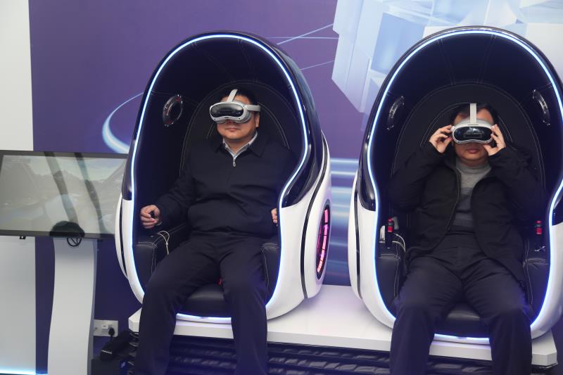 交流期间,学院一行走进万特电气展厅,沉浸式体验了高空坠落体感装置、电力安全VR体感装置、全向移动式电力巡视VR体验系统、多人动感电力巡线VR体验系统等核心产品。通过虚实结合的互动体验,直观感受VR技术与电力行业的深度融合,切实体会到数字化技术为电力安全培训、作业流程优化带来的革命性变化与独特价值。