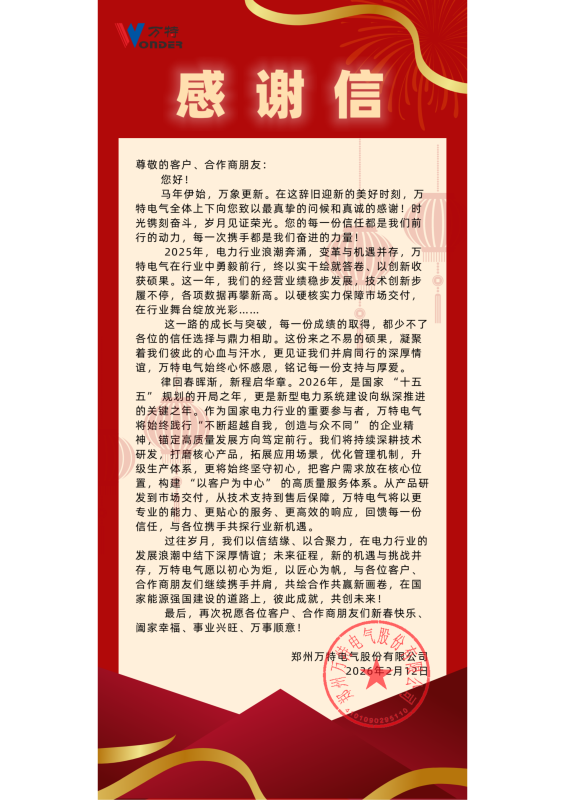 万特电气致客户、合作商朋友们的一封信